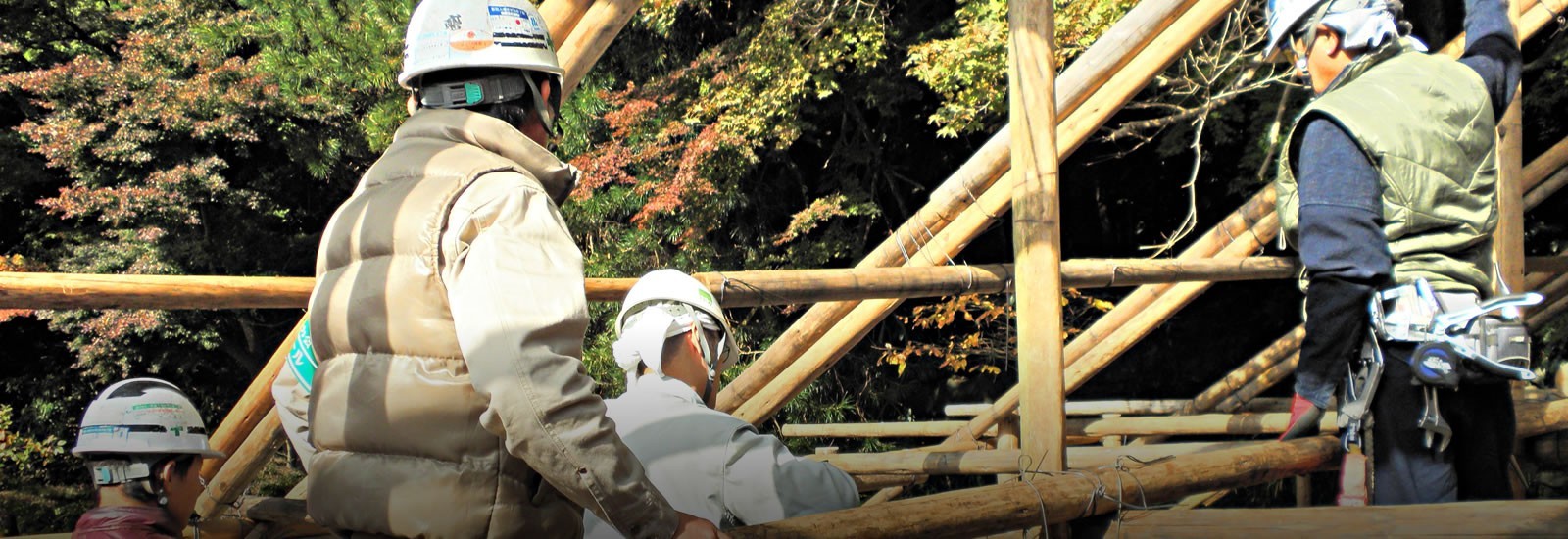 豊国が選ばれる理由工事現場で働く人たちが作業するために建てる「仮設足場」。 |