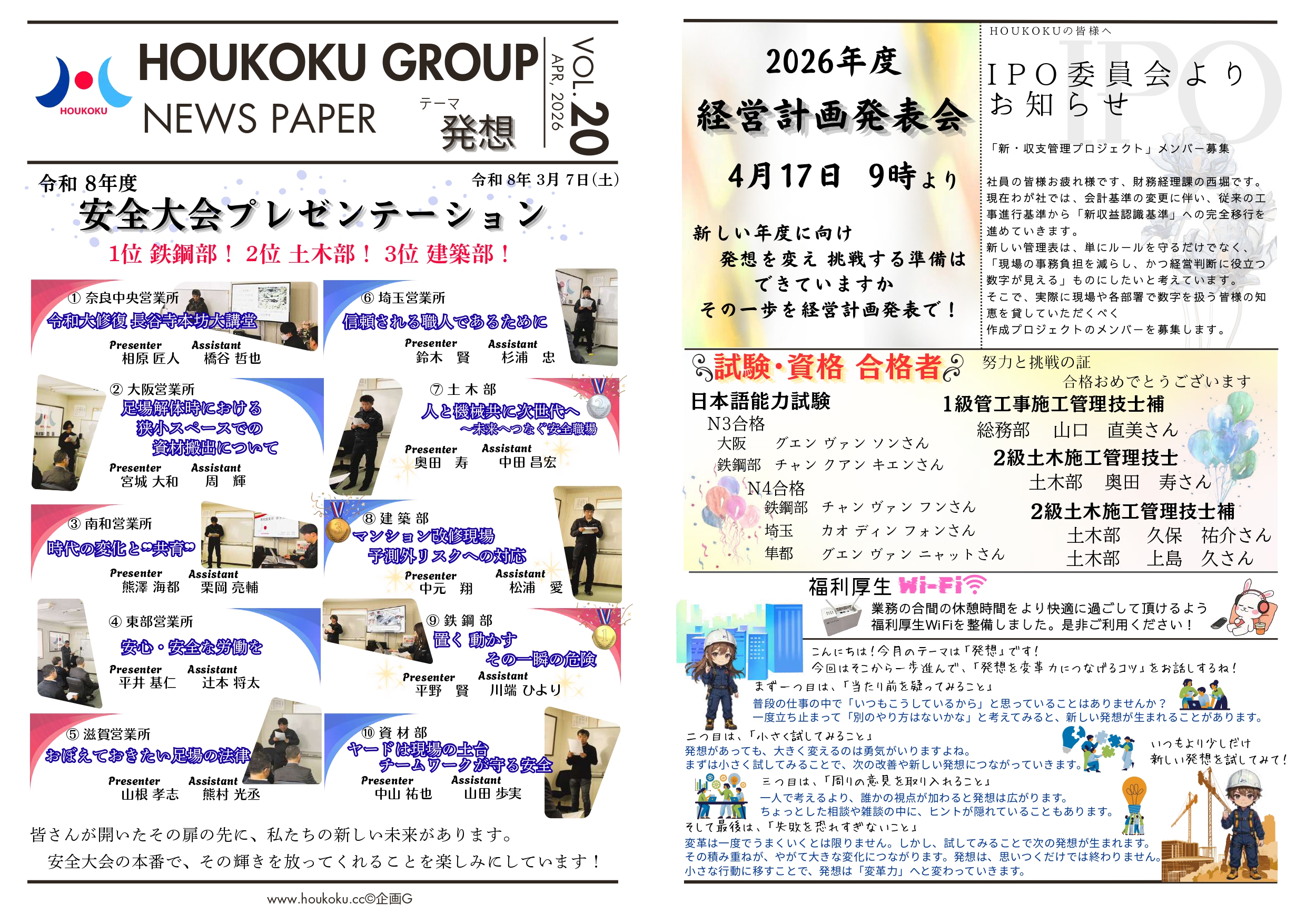ホーム > 会社情報 > NEWS PAPER > 2026年 NEWS PAPER > HOUKOKU NEWS PAPER 2026年4月号