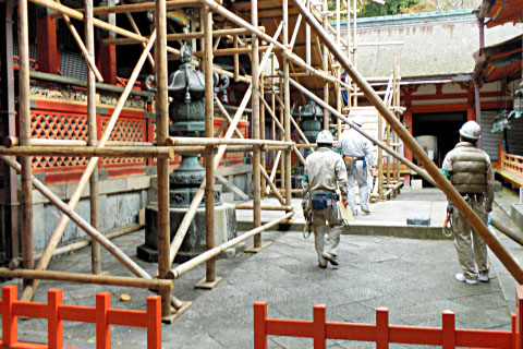 また、唐招提寺の耐震化工事など大規模な基礎補修工事、「大安寺 足場の塔」などの芸術作品の施工も行うなど、「足場施工会社」の枠を大きく超えてさまざまな建設工事に携わっています。